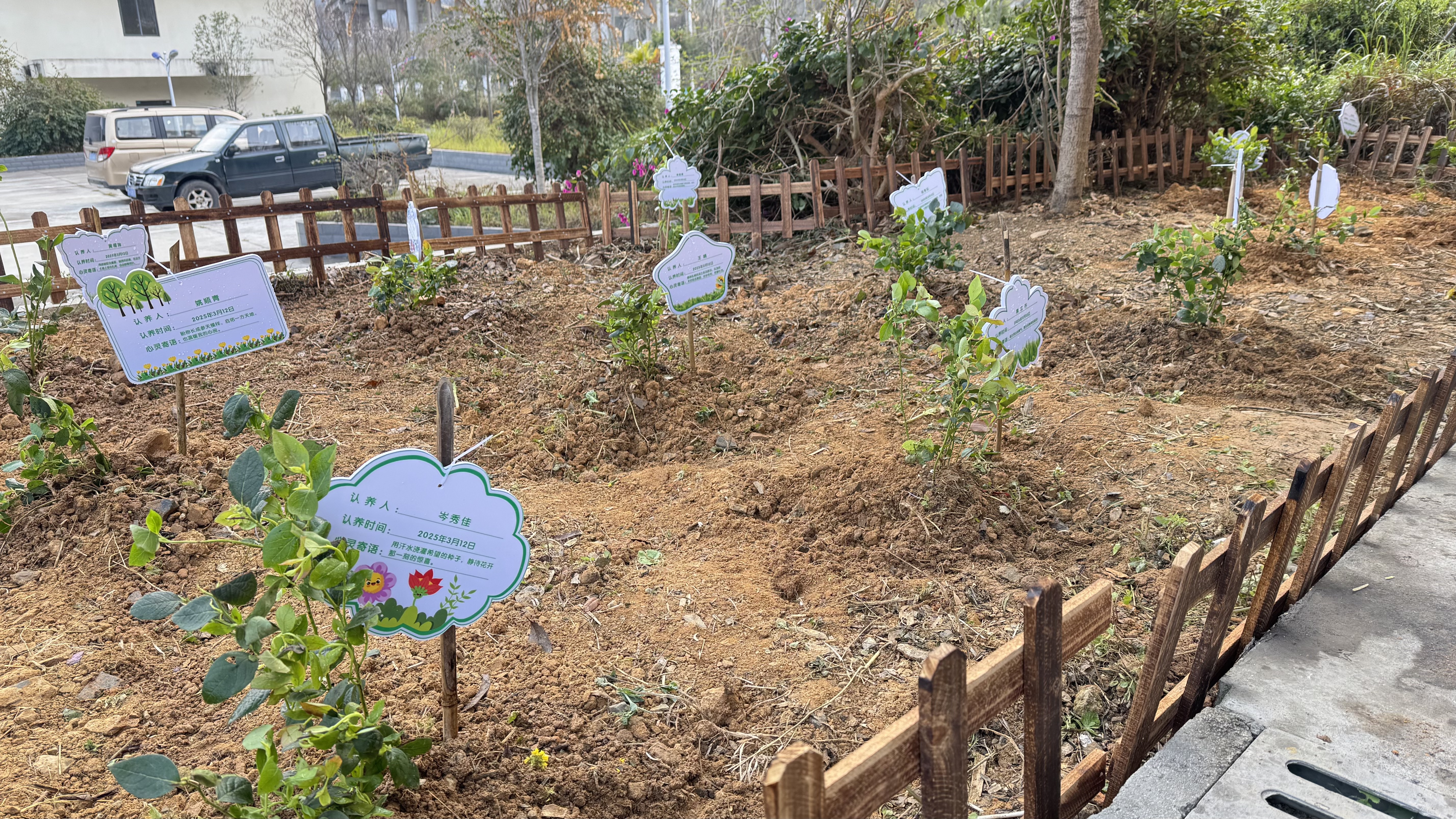 植树完成后,收费站每个员工都认养了一颗果树,大家纷纷挂上特别的“认养牌”。员工们一边挂牌一边笑着说:“这些蓝莓树归我们照顾了!以后常来浇水施肥,等结了果,还能请过往司乘人员一起尝尝。”小小的认养牌不仅承载着责任,更寄托着对绿意成荫的期盼。