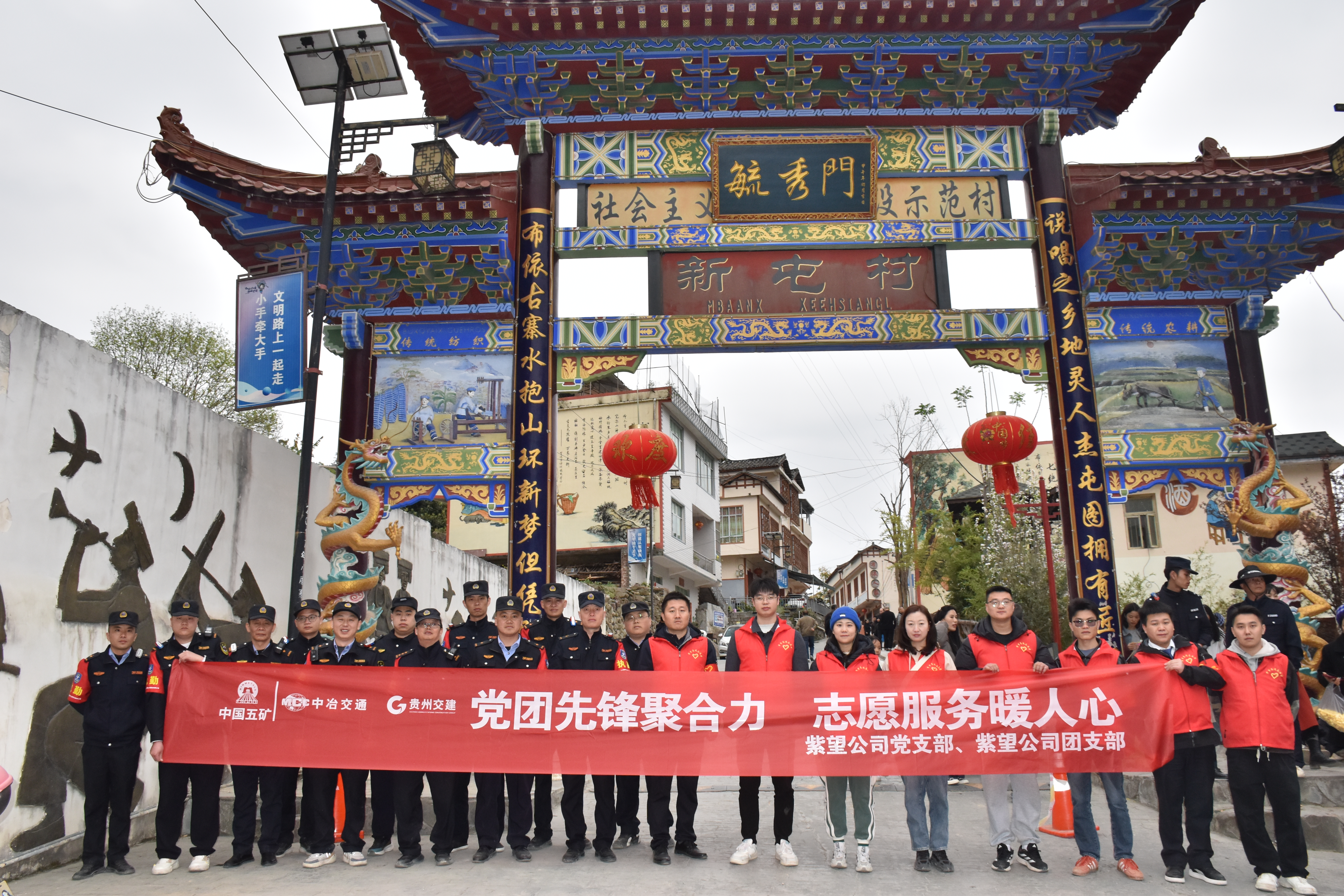 本次新屯分会场“三月三”的主题为“且歌且乐•非遗新屯”,一系列丰富多彩的活动吸引了众多游客和当地居民共襄盛举,包括民俗表演、特色美食体验、非遗文化集锦等。紫望公司党支部得知活动消息后,迅速组织了一支由30名党员、团员和员工代表组成的志愿者队伍,积极投身到活动的各项服务中。