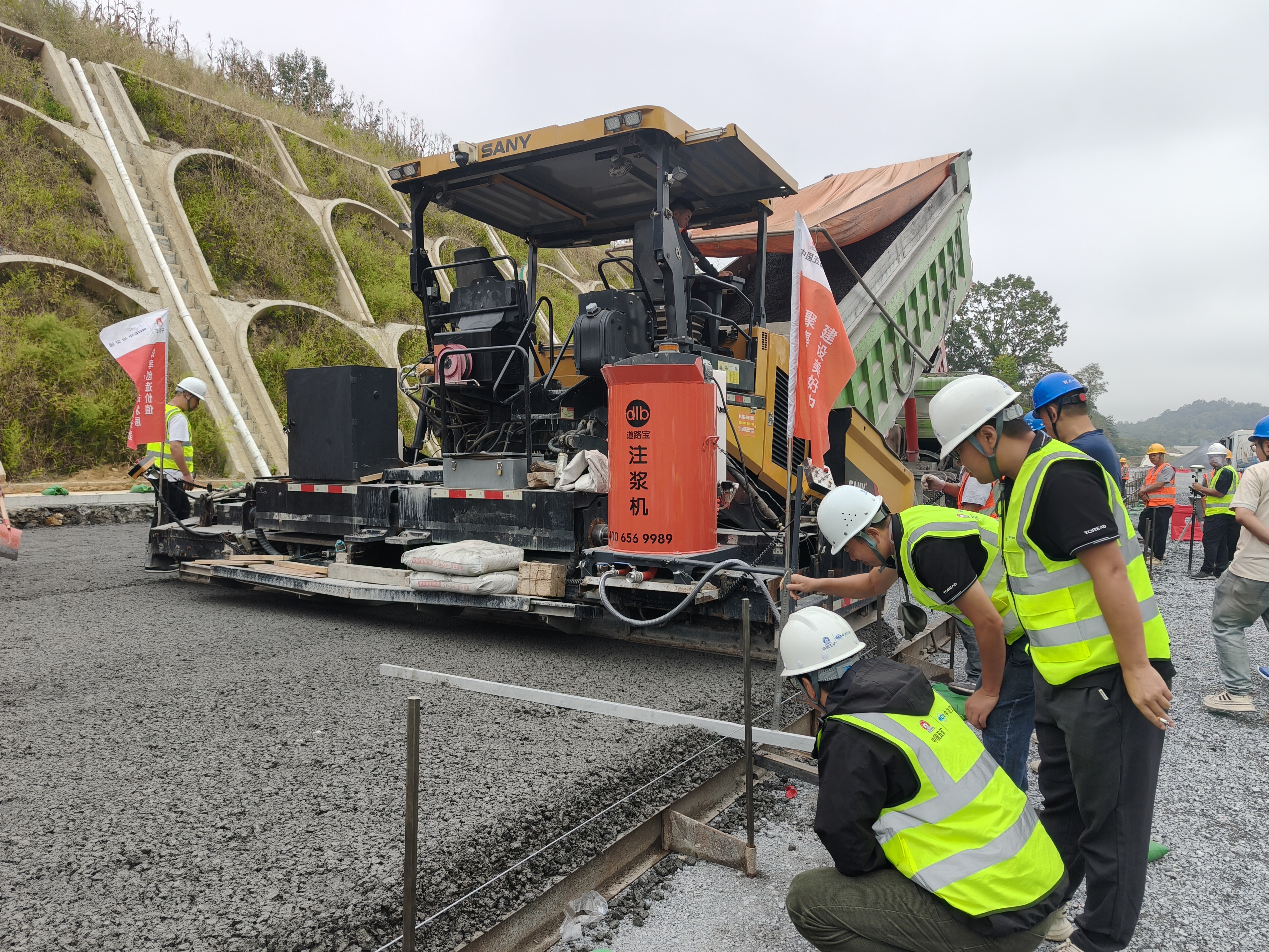G59项目路面工程主线全长22.29公里,另有3处互通,公路等级为高速公路,设计速度为100公里/小时。此次首件工程试验段长200米,在施工过程中,项目以“定标准、找问题、优工艺”为核心,严格遵循“试验先行、样板引路”的原则,从原材料检测、配合比设计到现场摊铺、碾压工艺、洒水养生,实施全过程精细化管控。同时,在进行现场施工时,施工现场管理井然有序:摊铺机匀速、连续作业,确保摊铺厚度均匀、表面平整;多台不同型号的压路机遵循“紧跟、慢压、高频、低幅”的原则,按照既定的压实工艺进行组合碾压,严格控制压实遍数和速度;技术人员通过实时监测含水量、水泥剂量等指标,动态调整施工参数,确保底基层压实度、强度及整体质量全面达标。